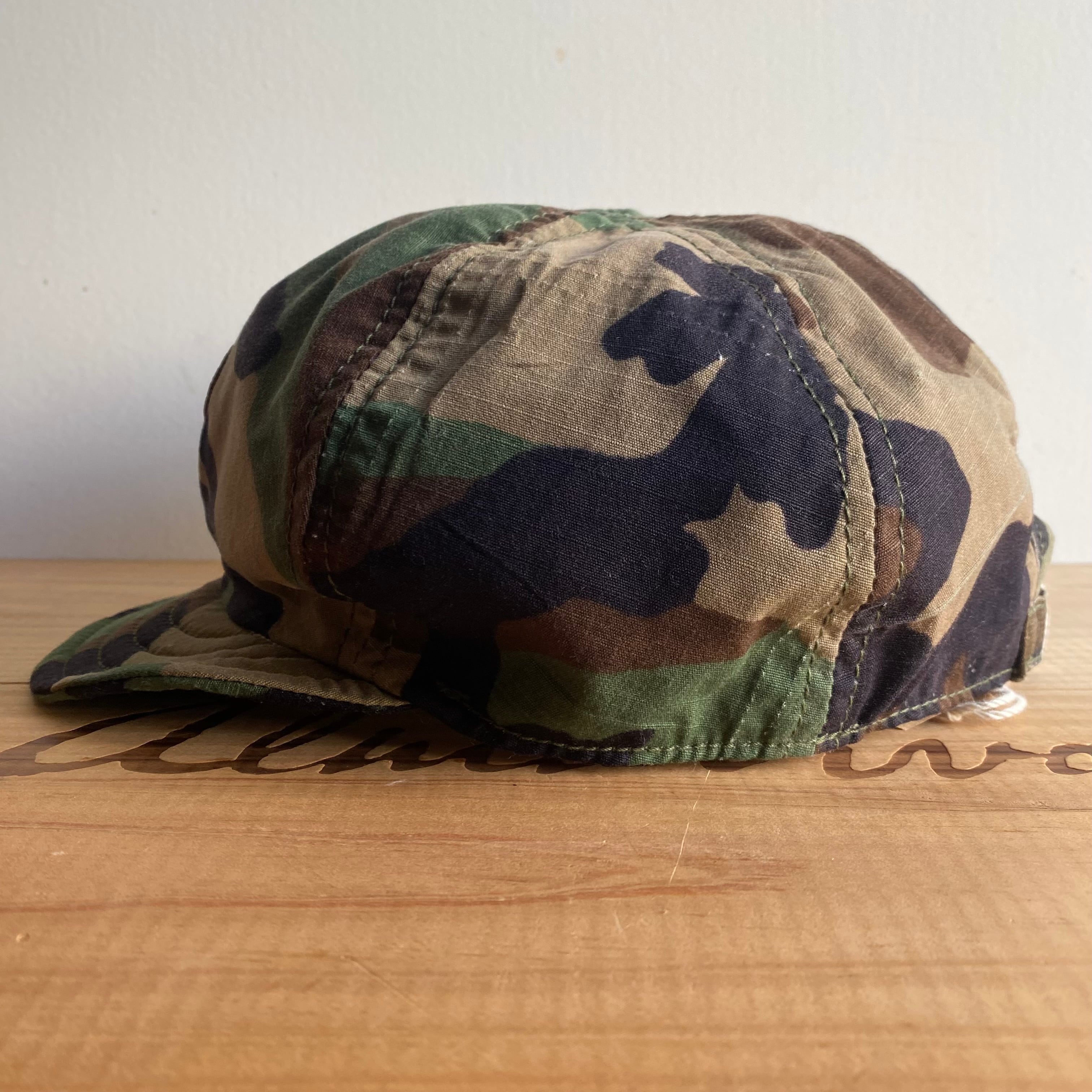米軍のBDU WOODLAND CAMOジャケットを解体し、PPFオリジナルのキャップとして再構築しました。