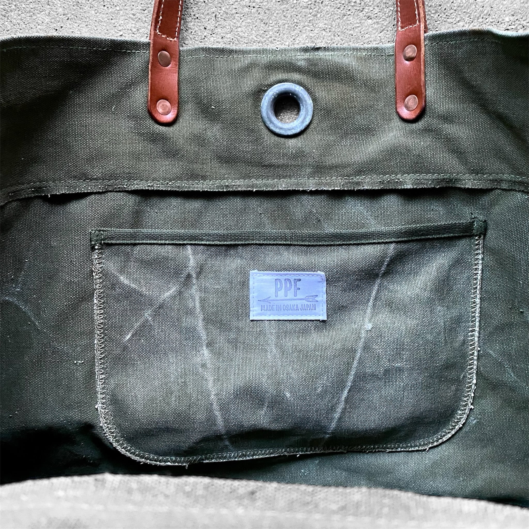 This is a PPF original tote bag, remade from a rare 1940s US Military 1st TYPE duffle bag. You can enjoy the unique texture and presence that only vintage items can offer.